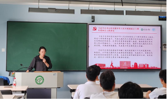 会上,陈亚莉带领大家学习习近平总书记在庆祝中华人民共和国成立75周年招待会上的讲话。让大家深刻认识中华民族从站起来、富起来再到强起来的伟大飞跃,更加明确自己的责任和担当,增强个人的历史使命感,坚定理想信念,明确奋斗方向。