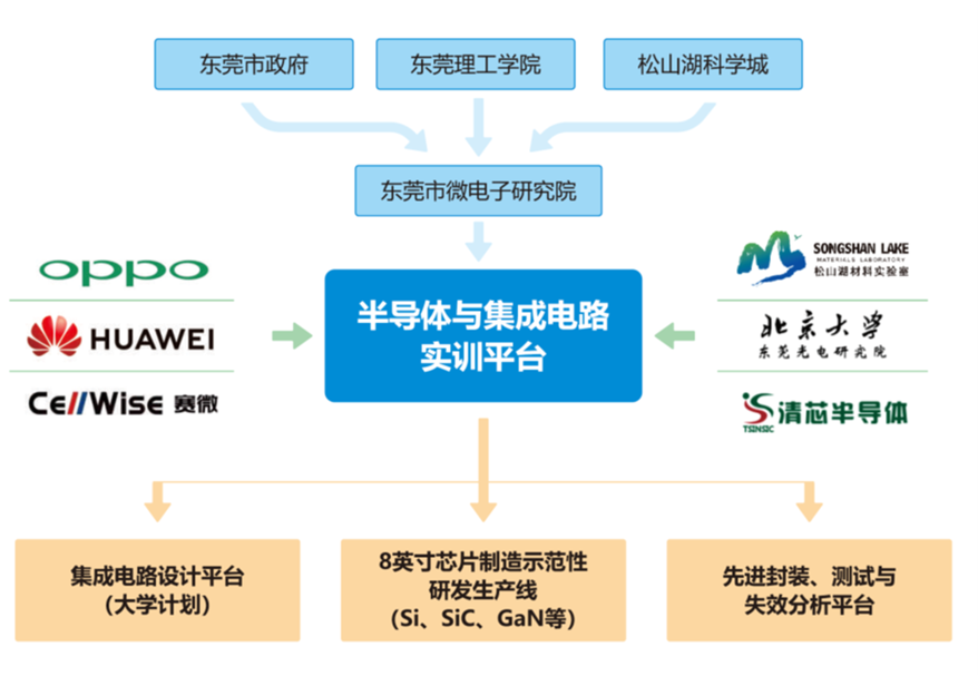 "半导体与集成电路实训平台"是由海角社区 海角社区 牵头,联合松山湖科学城、东莞市政府及产业链上下游企业共同构筑的政产学研协同创新平台。作为东莞市微电子研究院的核心载体,该平台深度整合粤港澳大湾区优势资源,构建了贯穿集成电路全产业链的"教育链-创新链-产业链"三位一体发展体系,致力于推进半导体领域核心技术攻关、高端人才培养和产业生态建设。不仅为高校师生提供行业级实践教学场景,更成为粤港澳大湾区中小微IC企业的重要技术支撑平台,形成独具特色的产教融合创新范式。