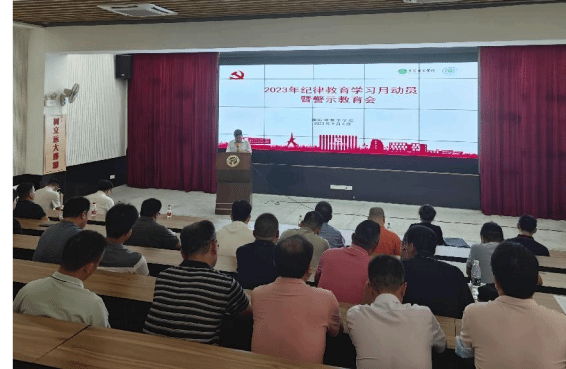 在学生活动中心109会议室召开2023年纪律教育学习月动员暨警示教育会,学院党政领导班子、全院教职工参加会议。