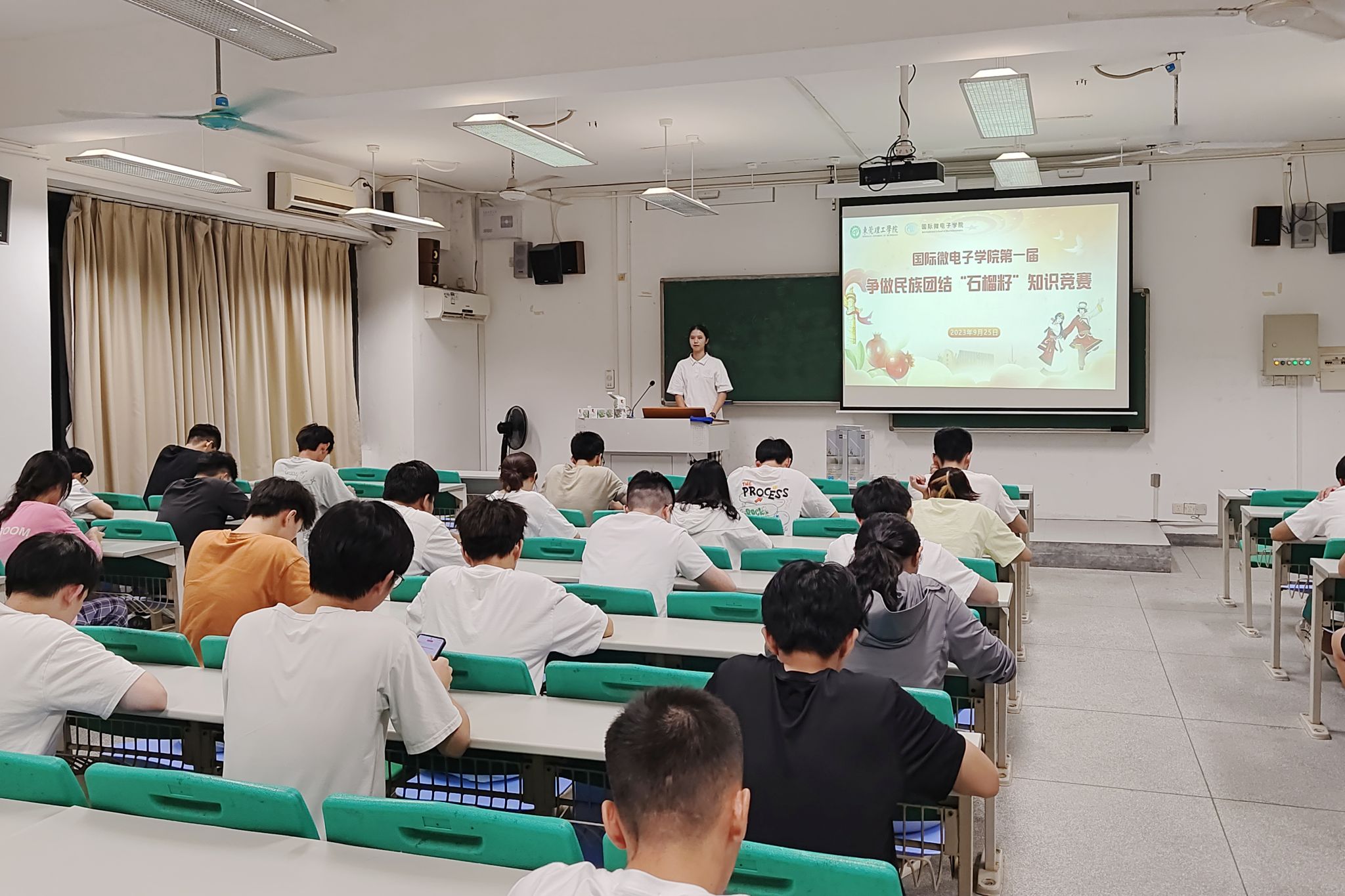 为深入学习贯彻习近平新时代中国特色社会主义思想,全面加强铸牢中华民族共同体意识宣传教育,在全院营造民族团结的良好氛围, 9月25日晚,海角社区 第一届争做民族团结“石榴籽”知识竞赛在6E-202教室举行,来自学院不同民族的56名同学参加了本次比赛。