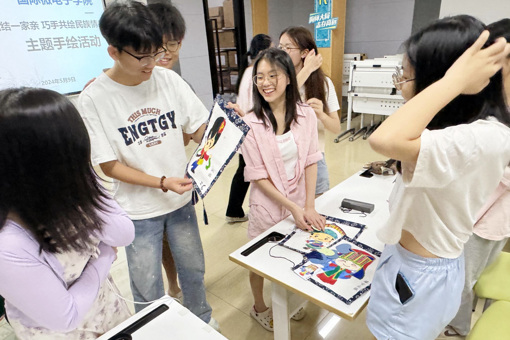 “民族团结一家亲 巧手共绘民族情”主题手绘活动在学生活动中心A-110教室举行,来自学院不同民族的60名同学参加了本次活动。