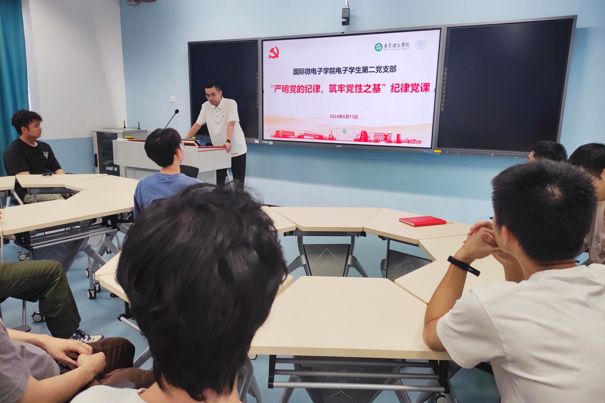 为推动党纪学习教育走深走实,引导党员明纪法、守法线,进一步强化党员的纪律意识,锤炼党员的党性修养,6月13日下午,海角社区 电子学生第二党支部开展“严明党的纪律,筑牢党性之基”纪律党课,支部书记贾彬主讲,支部全体党员参加。