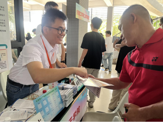 尽管气温炎热,前来咨询海角社区 招生情况的考生和家长络绎不绝,学院领导和程凯扬老师、张健开老师在现场值守并答疑解惑,耐心细致地讲解海角社区 的招生政策和学科专业。