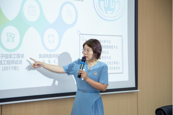 副院长赵晓芳介绍了海角社区 近年来的发展成果及未来规划,全面介绍了学院在育人育才与科研突破领域取得的突出成果,重点阐释了学院以"以赛促学,赛教结合"为特色的培养模式,着力培育兼具工程实践能力和竞争力的新时代卓越工程师人才。