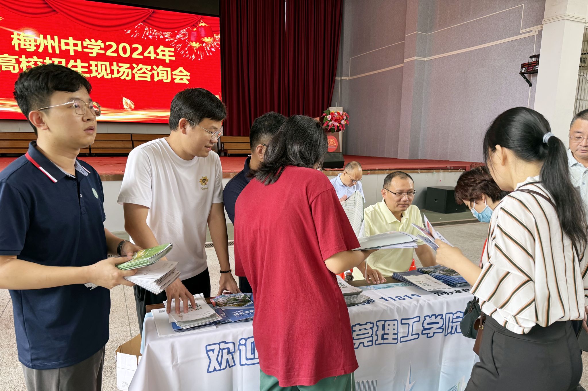 在广东梅州,学院的宣传小组先后走进梅州曾宪梓中学、梅州中学、梅县东山中学、虎山中学、五华县水寨中学、兴宁市沐彬中学等多所中学开展招生宣传。他们全方位地向考生与家长介绍了学校的学科建设、人才培养以及科学研究等情况,并热情接受了众多有意报考考生的现场咨询。针对招生政策、专业设置以及就业等焦点问题,为广大考生和家长悉心答疑解惑。