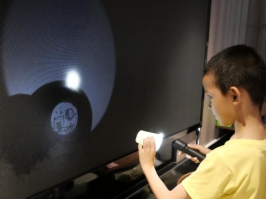 幻灯机里流转的光影,让纸杯与画笔变成“造梦工具”,创意在黑暗中开出花来。