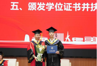 2025届毕业生代表、2021级电卓2班戴琛祺在学位授予仪式上分享了自己的求学经历。他深情回溯四年求学时光,代表全体毕业生向躬耕不辍的老师们致以诚挚谢意。感恩能在课堂上深耕专业知识,实验室里研磨科研能力,图书馆中厚植学术底蕴,实践活动里淬炼综合素养。作为学生骨干代表,戴琛祺特别分享了组织校园活动的成长体悟,生动诠释了这届学子在责任担当中绽放的青春力量。临别之际,他表示在今后的旅途中我们仍会遇到困难、感到迷茫,那时,我们更应该仔细聆听心中坚定求知、不断求索的声音。