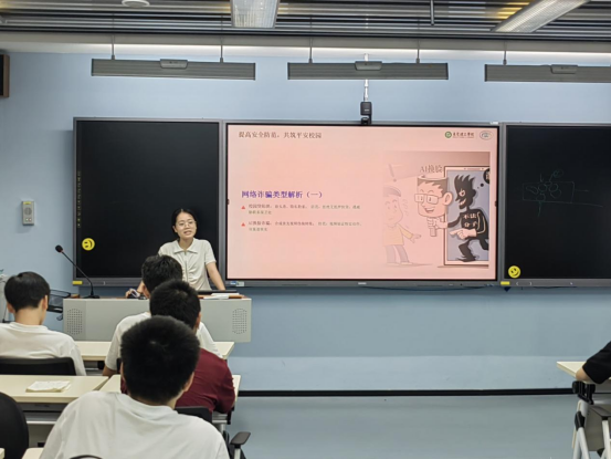 面对开学季高发的网络安全风险,各班级将“安全防诈”作为重中之重。班会不仅普及了防范“校园贷”“刷单返利”等诈骗的通用知识,更紧密结合校园生活实际。有班级针对上下课高峰期人车混流现象,特别强调了交通安全;有班级则提醒同学们在实验室、宿舍等场所注意用电安全。通过真实案例剖析与情景模拟,同学们的安全防范意识得到显著提升,共同构筑起一道坚不可摧的校园安全“防火墙”。