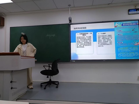 结合当前基孔肯亚热等蚊媒传染病的防控形势,学院各班级将“美丽校园”创建落到实际行动中。班会详细讲解了蚊虫孳生原理与疾病传播途径,并重点将防控知识转化为具体可行的宿舍卫生要求。同学们被引导关注“花盆底盘、洗手池、闲置容器”等易积水细节,从整理个人内务做起,彻底清理卫生死角。同时班会上还重点向同学们发出提醒:若14天内有重点区域旅居史,需第一时间向辅导员报备,并及时在“一网通办”-“师生员工旅居史填报”业务中完成信息填报,主动向学院反馈健康监测情况。这场生动的环境卫生课,有效培养了同学们的公共卫生意识与主体责任担当。