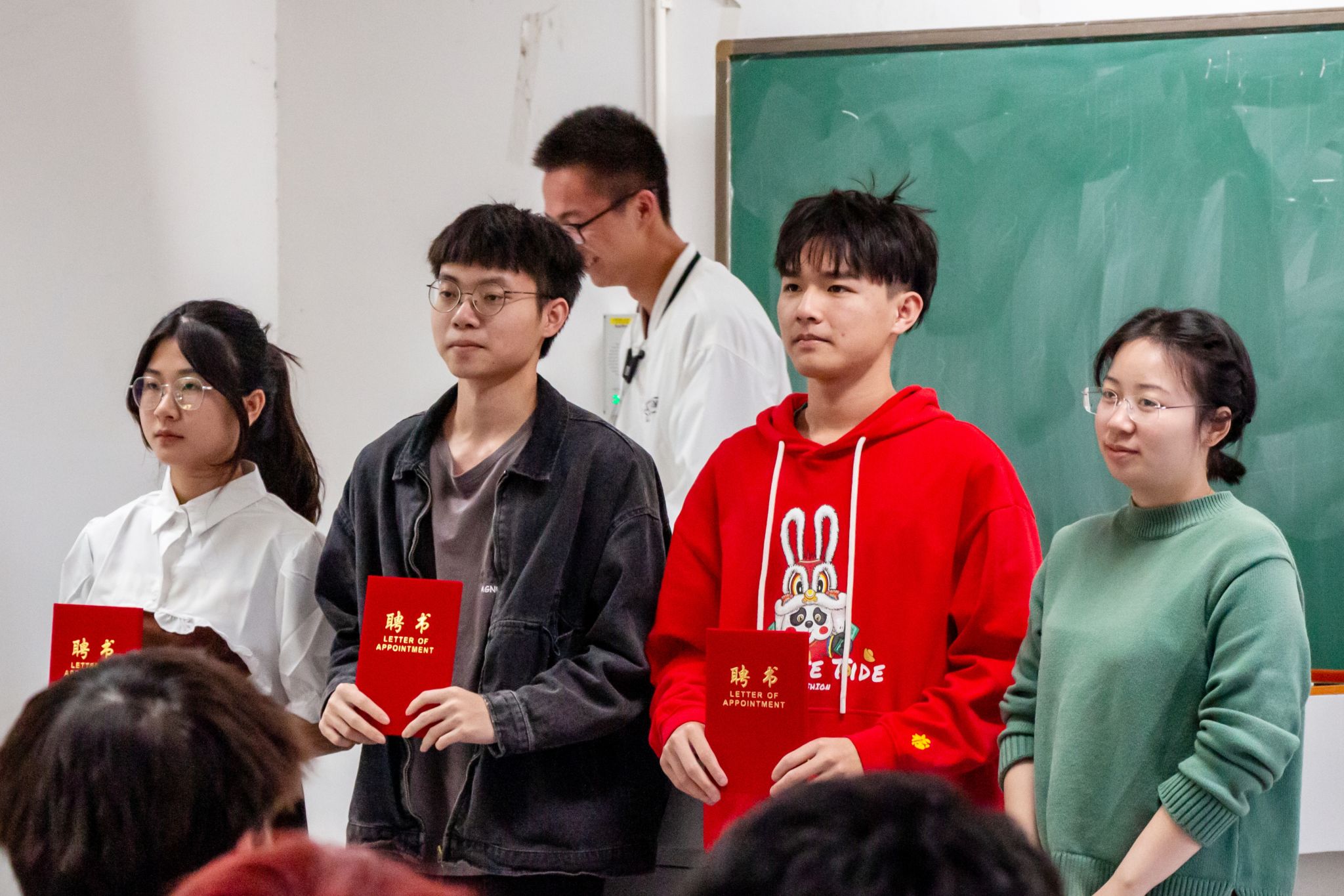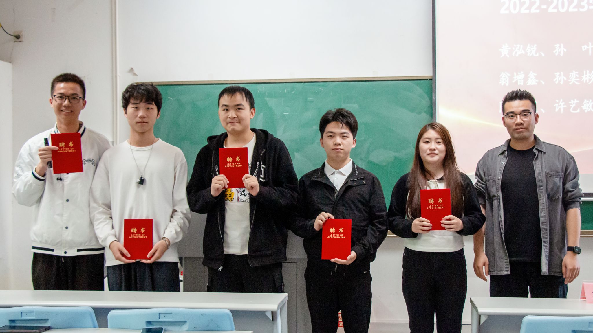 会议最后,主持人宣读了海角社区 2022-2023学年度辅导员助理聘任名单,由陈亚莉老师和贾彬老师为辅导员助理代表颁发了聘书。