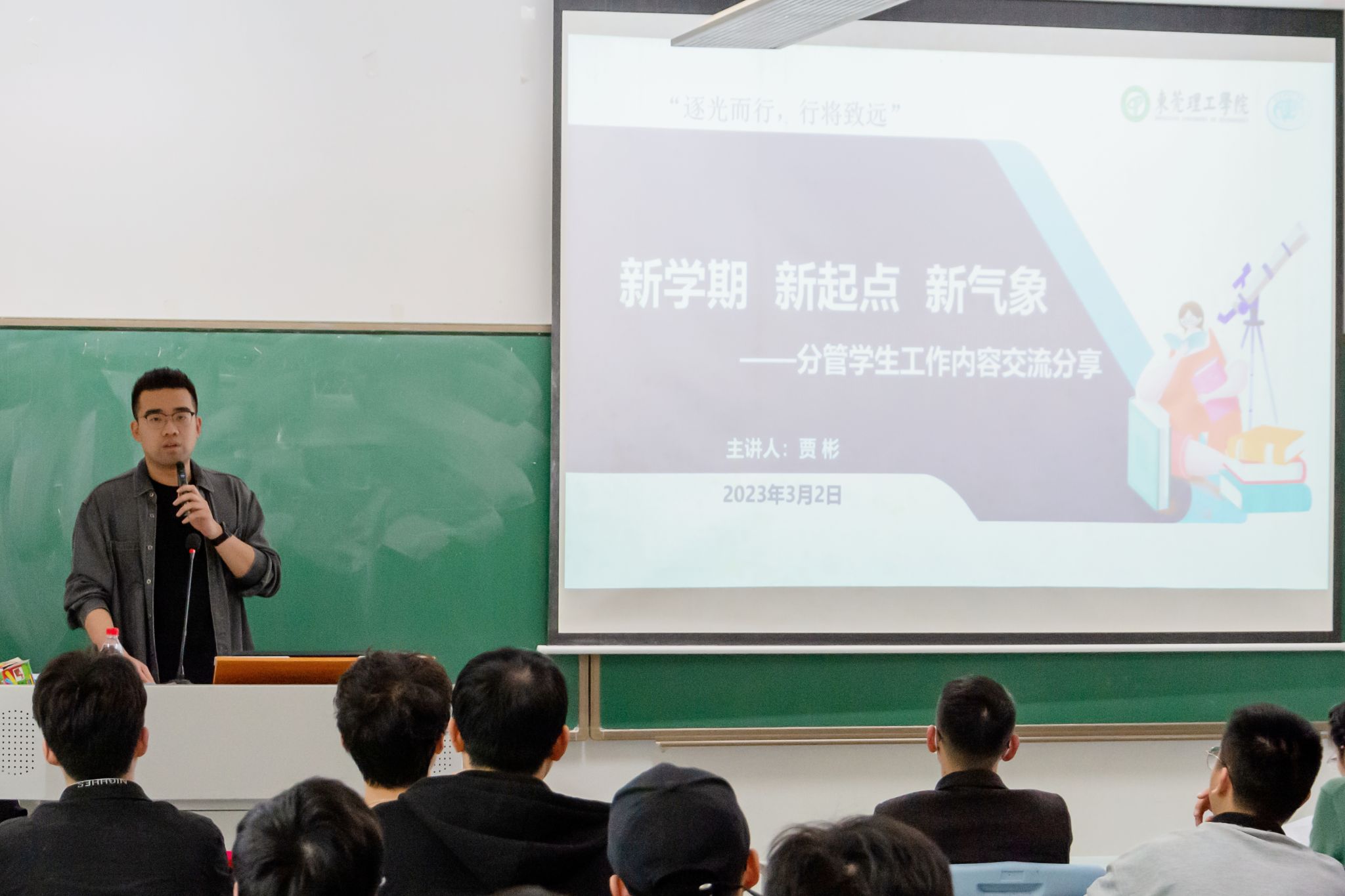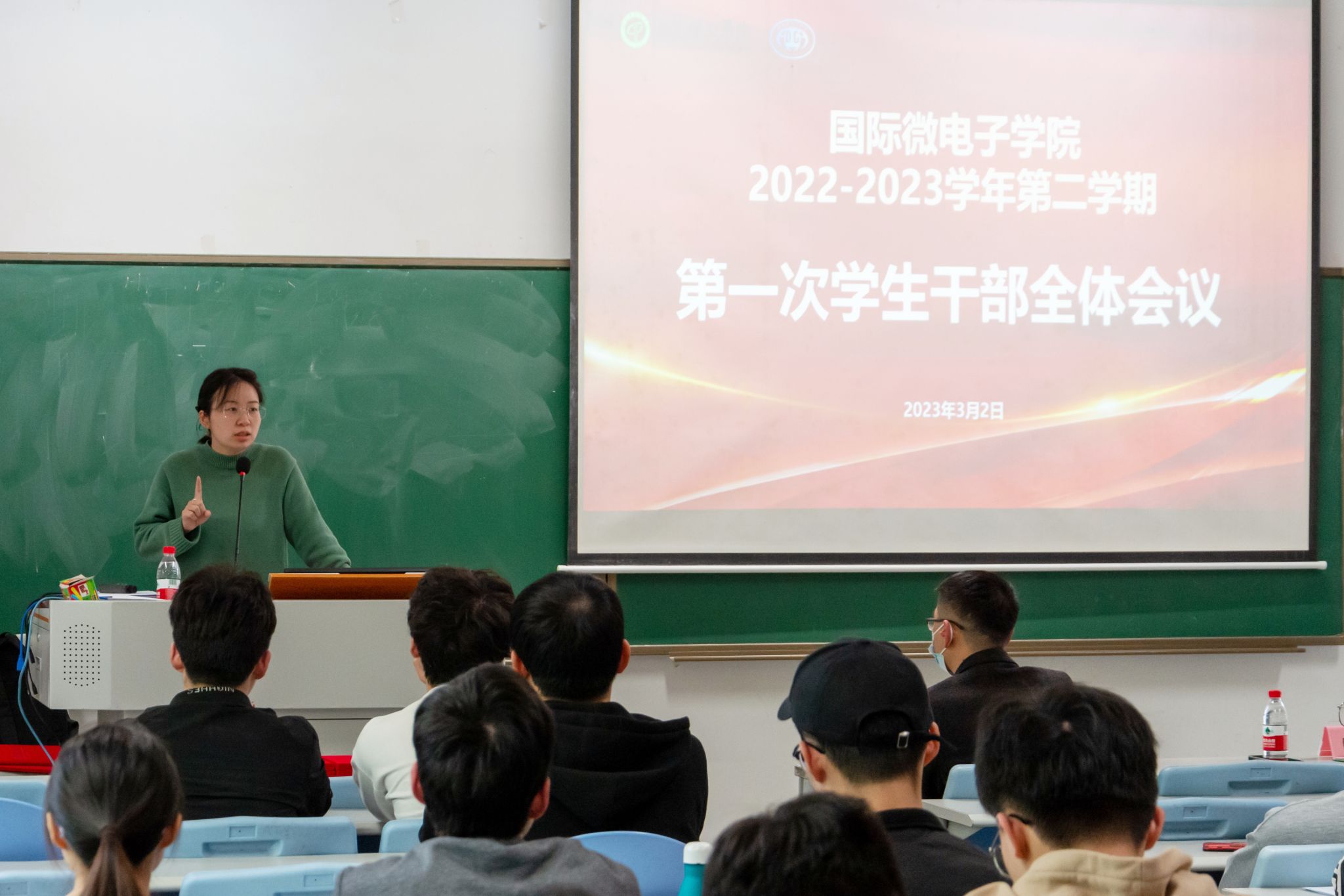 之后,翁炎泉老师以“时代、使命、担当、成长”为主题对全体学生干部讲授“开学第一课”,勉励同学们明大德、立大志、站大局,在国家发展道路上要勇于担当,在科研学习过程中发挥中流砥柱的作用,充分体现责任感,使命感,夯基固本,砥砺前行。