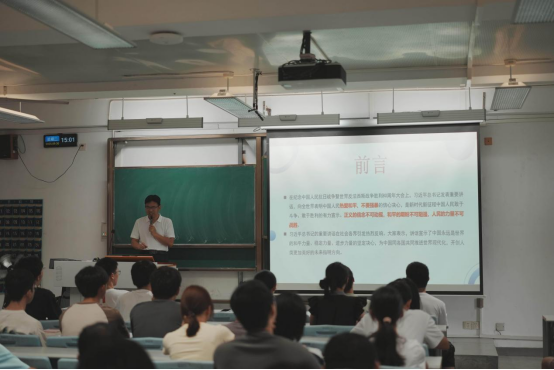 课程中,任斌引领同学们学习了习近平总书记在纪念中国人民抗日战争暨世界反法西斯战争胜利80周年大会上的重要讲话精神。总书记的讲话宣示了中国人民热爱和平、不畏强暴的信心决心,是新时代敢于斗争、敢于胜利的有力体现。这份精神力量与当前攻克技术难关、实现科技自立自强的要求一脉相承。任斌强调,要有“正义信念不可动摇”的骨气,在科研中坚持自主创新;要有“和平期盼不可阻遏”的胸怀,以开放合作促进全球科技进步;更要坚信“人民力量不可战胜”,将个人奋斗汇入民族复兴的洪流,为“共同推进世界现代化,开创人类更加美好的未来”贡献中国智慧与中国方案。