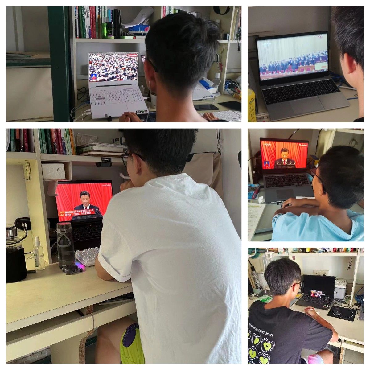 各班级同学积极响应党的二十大报告中传达的“踔厉奋发、勇毅前行”会议精神,做到学有所思、学有所用。通过学习党的二十大报告精神,在学校疫情管控期间,不仅收获了知识、融洽了感情、获得了快乐,还学会了用党的创新理论来武装头脑、指导实践、助推成长。