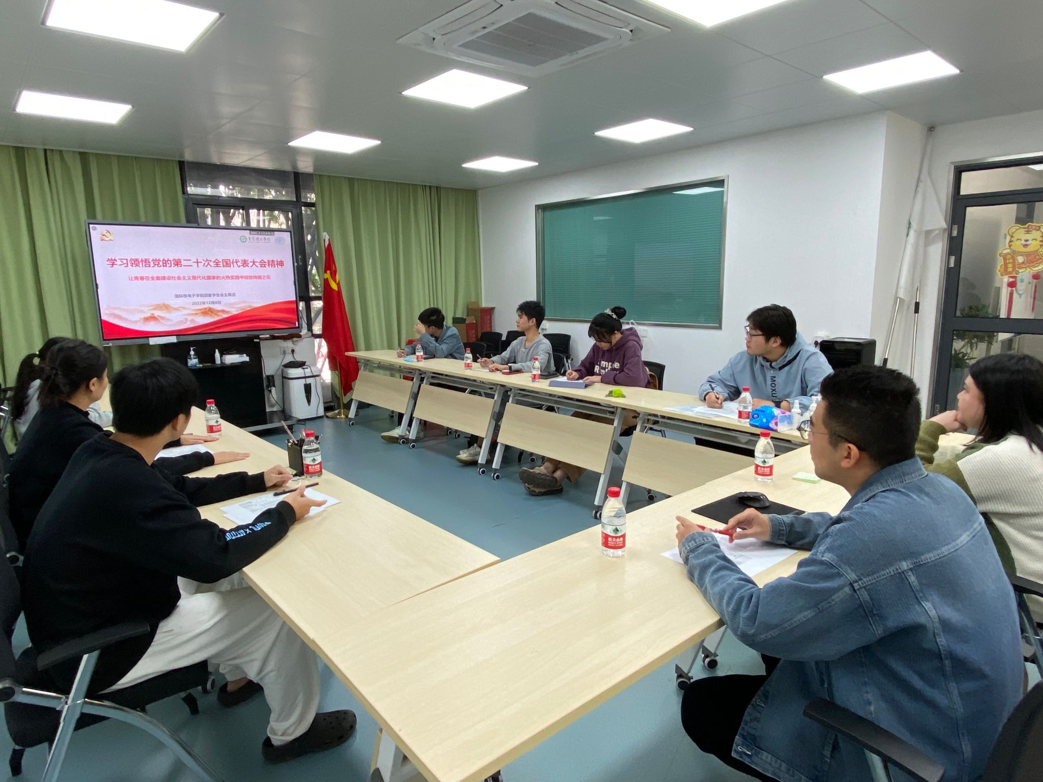 学生第一、第二党支部开展“学习党的二十大精神”主题党日活动,由学生第一、第二党支部书记陈亚莉老师和贾彬老师主讲。学生第一党支部书记陈亚莉表示,深入学习贯彻党的二十大精神是当前和今后一个时期的首要任务。当代青年要深刻领悟二十大精神,要有理想、敢担当、能吃苦、肯奋斗;要志存高远,也要精益求精,做好每一件事,完成好每一项任务;要勤于修身,做到崇德向善有我,树立和践行社会主义核心价值观,赓续红色血脉,传承红色基因;要争先担当,努力掌握科学知识,练就过硬本领,在祖国需要的地方建功立业,实现人生梦想。