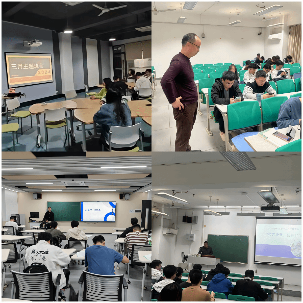 2024年3月13日-15日,学院各班级班主任主持召开主题班会,向班级同学宣讲了学校迎接审核评估相关事宜。