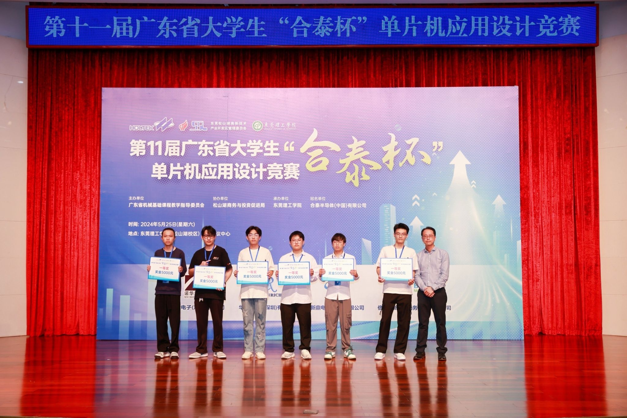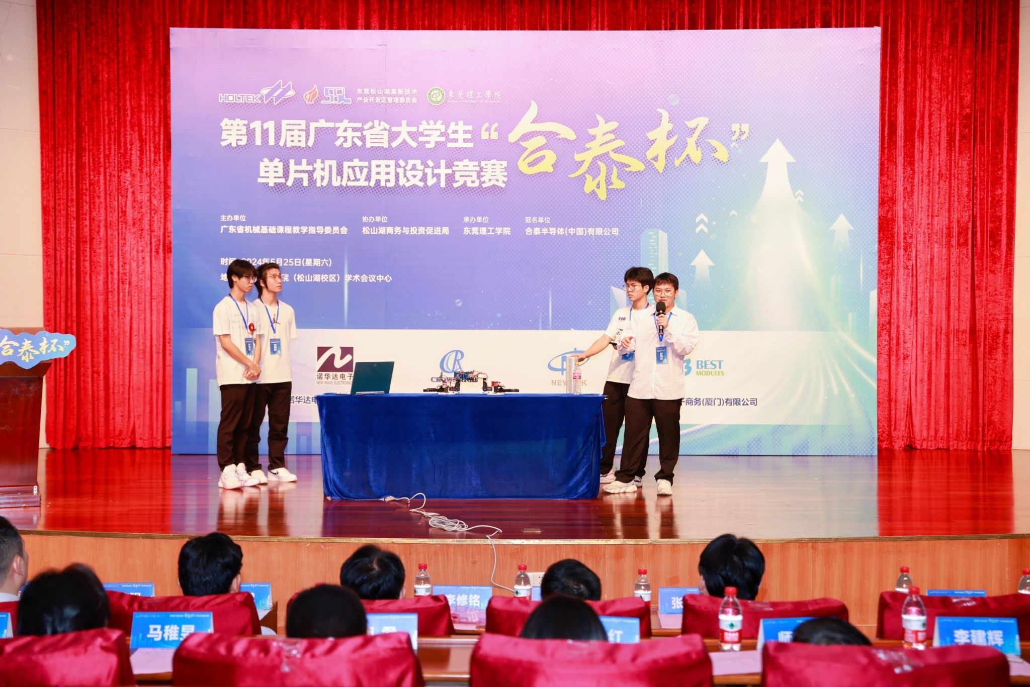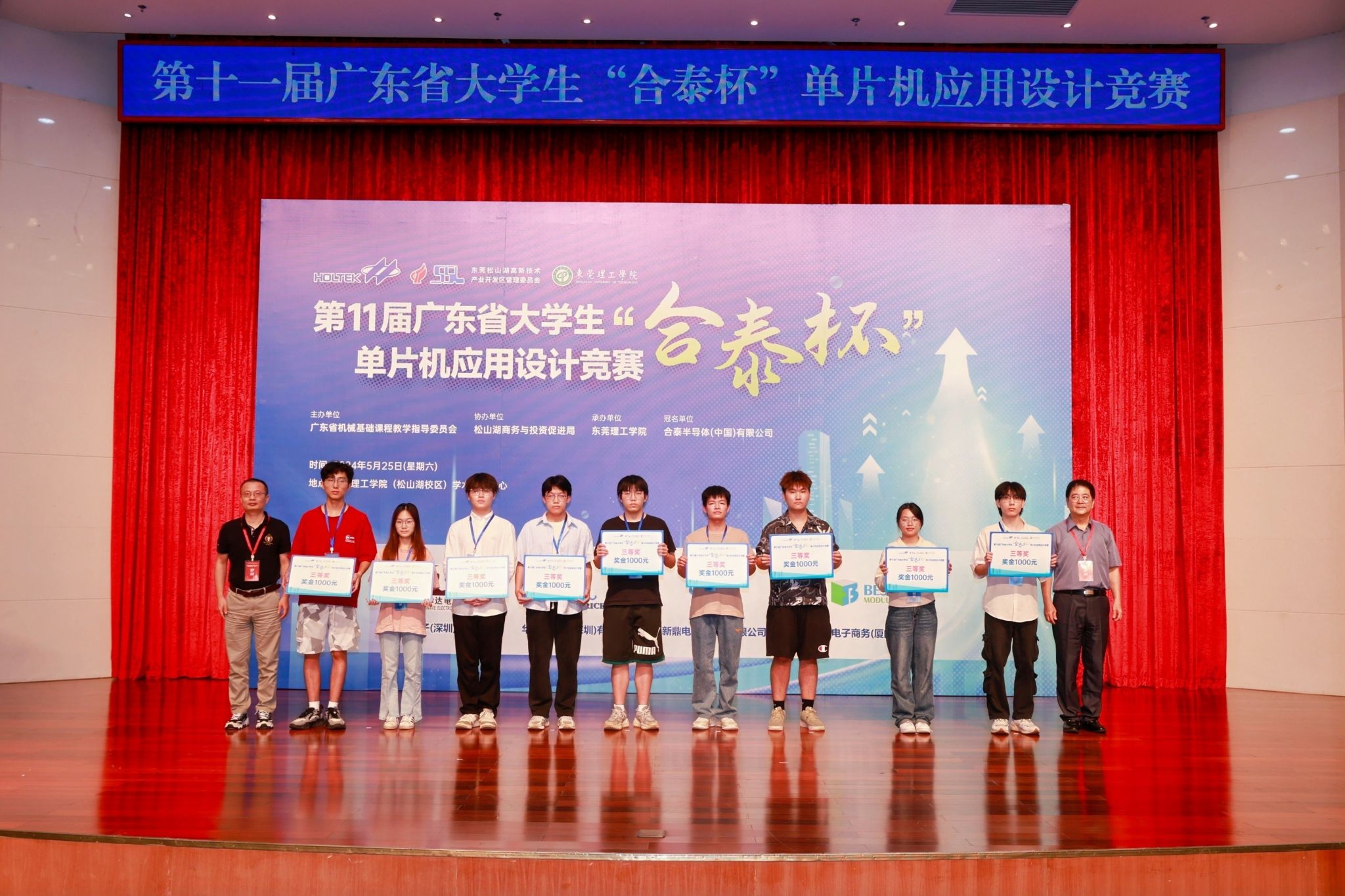 以科技创新为新质生产力蓄势赋能。2024年5月25日,由广东省本科高校机械基础课程教学指导委员会主办,海角社区 承办,东莞松山湖商务与投资促进局协办,合泰半导体(中国)有限公司冠名,诺华达电子(深圳)有限公司、华瑞电子(深圳)有限公司、新鼎电子(深圳)有限公司、倍易创新电子商务(厦门)有限公司赞助的第十一届广东省大学生“合泰杯”单片机应用设计竞赛决赛在海角社区 松山湖校区学术会议中心顺利举办。