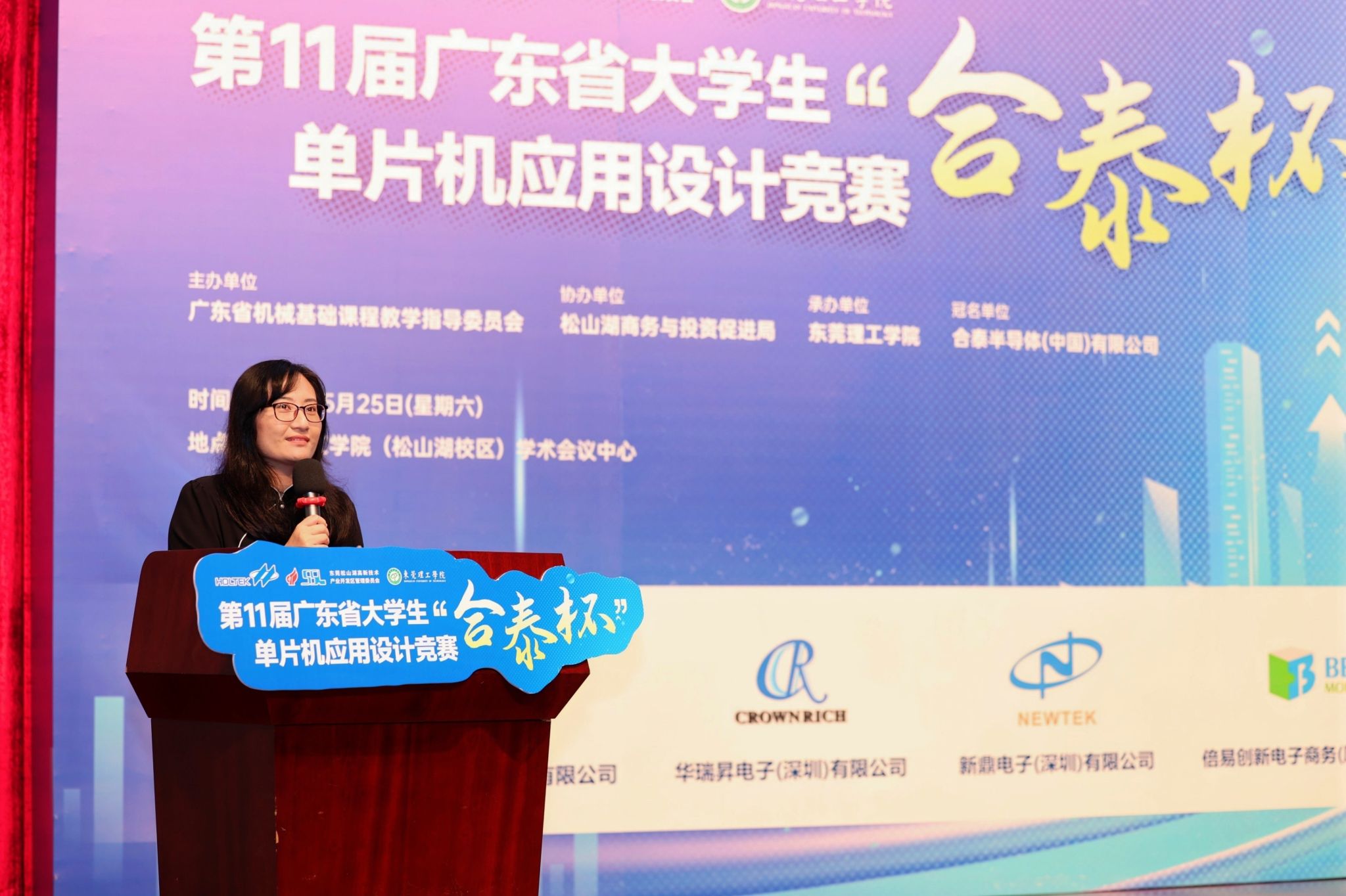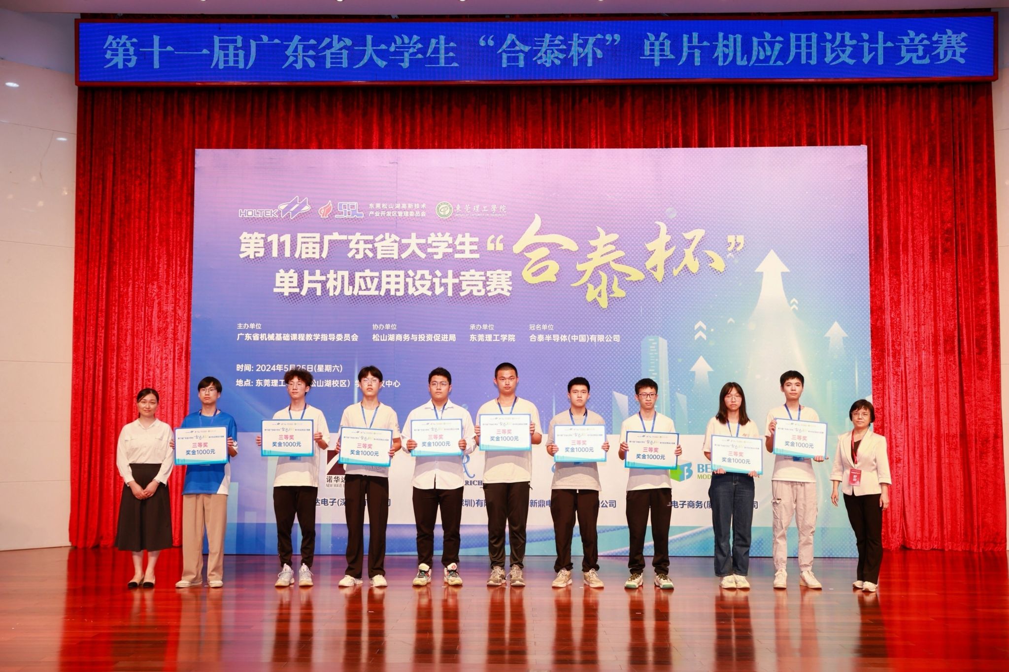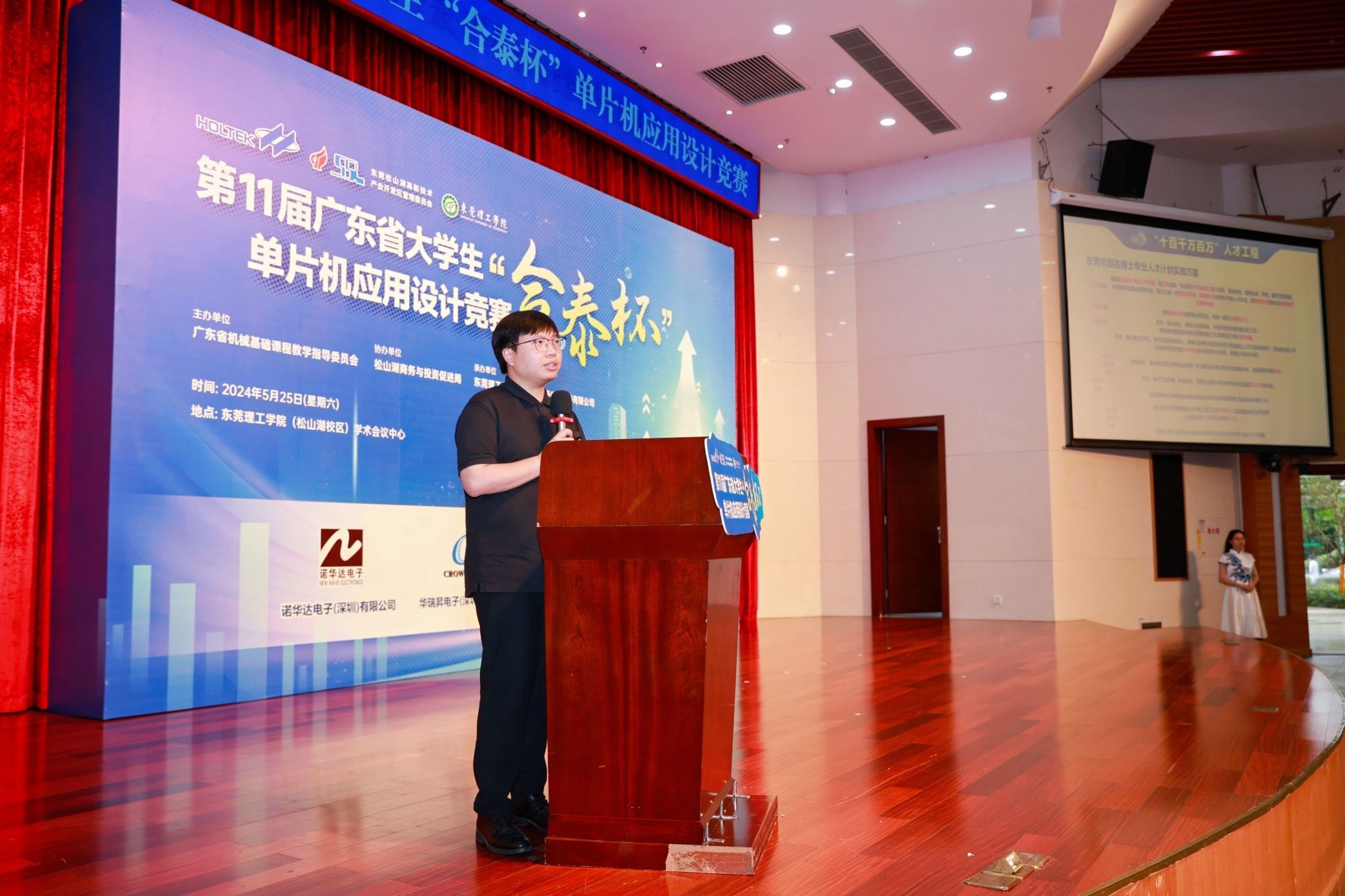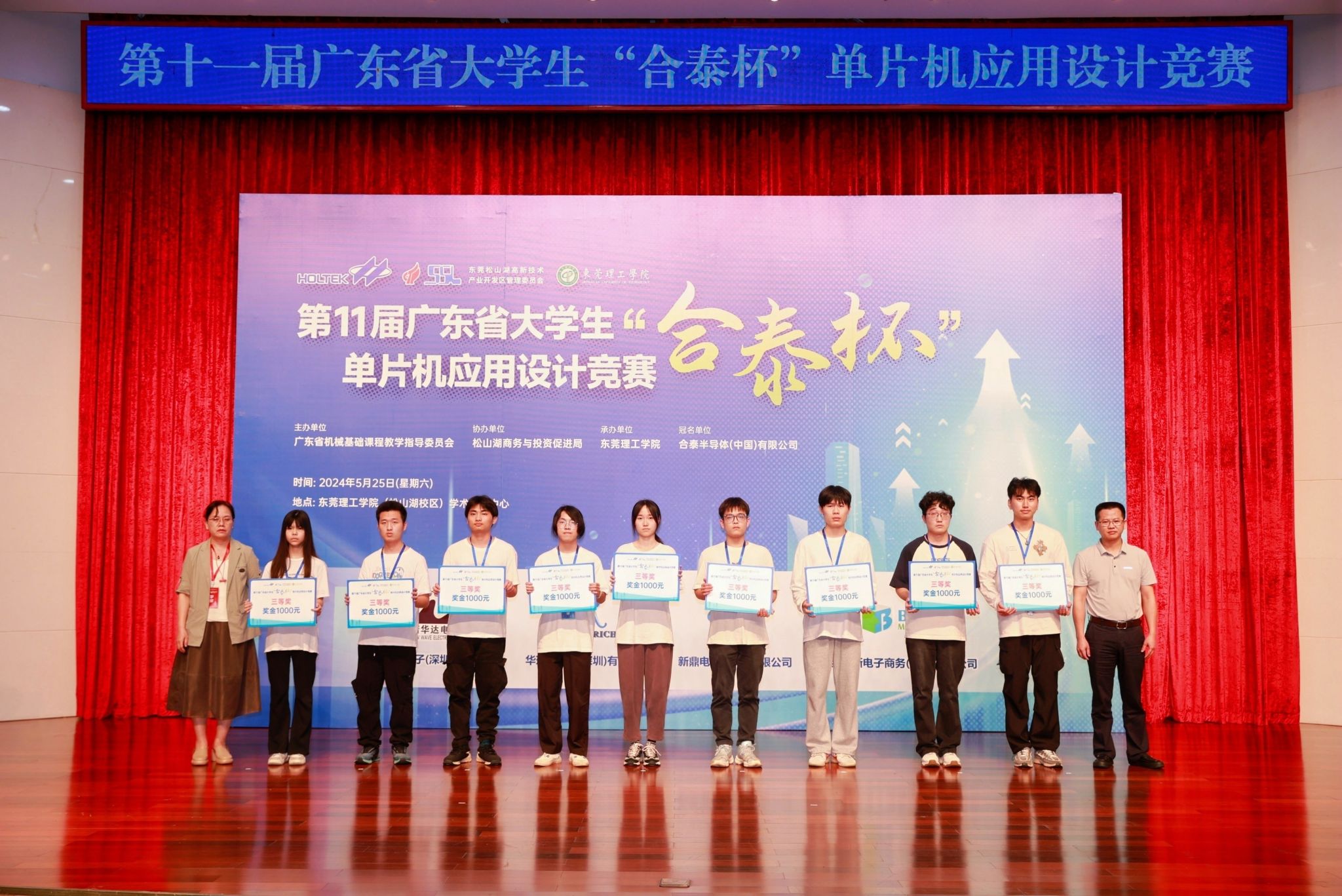 以科技创新为新质生产力蓄势赋能。2024年5月25日,由广东省本科高校机械基础课程教学指导委员会主办,海角社区 承办,东莞松山湖商务与投资促进局协办,合泰半导体(中国)有限公司冠名,诺华达电子(深圳)有限公司、华瑞电子(深圳)有限公司、新鼎电子(深圳)有限公司、倍易创新电子商务(厦门)有限公司赞助的第十一届广东省大学生“合泰杯”单片机应用设计竞赛决赛在海角社区 松山湖校区学术会议中心顺利举办。